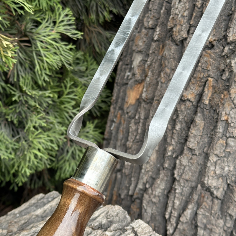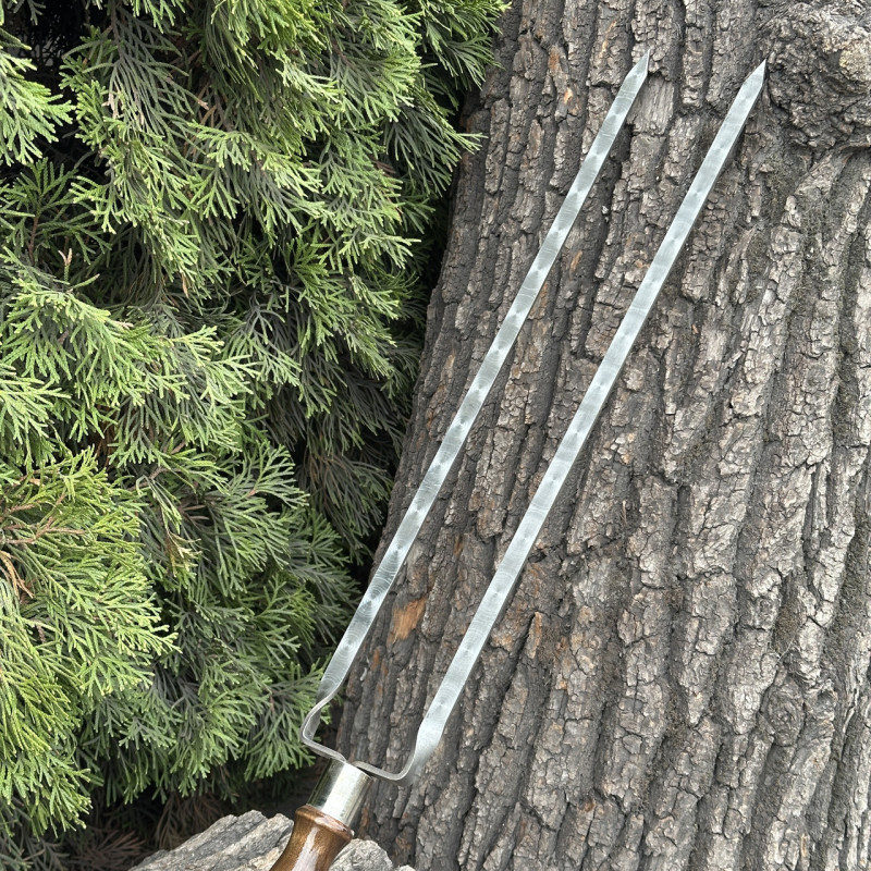 Подвійний шампур Mzavod з дерев'яною ручкою 630х12х3мм ретро