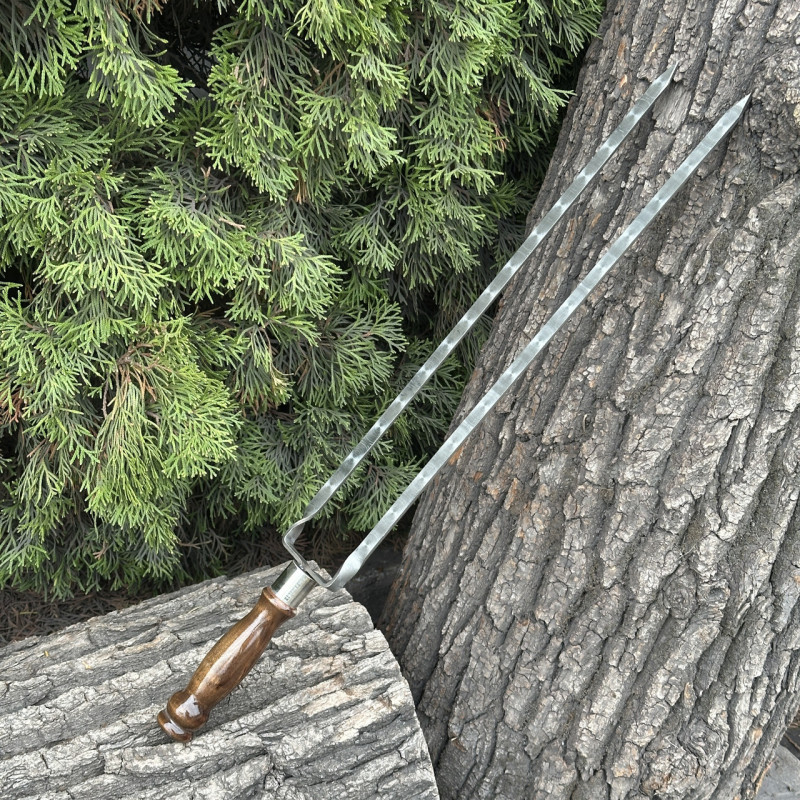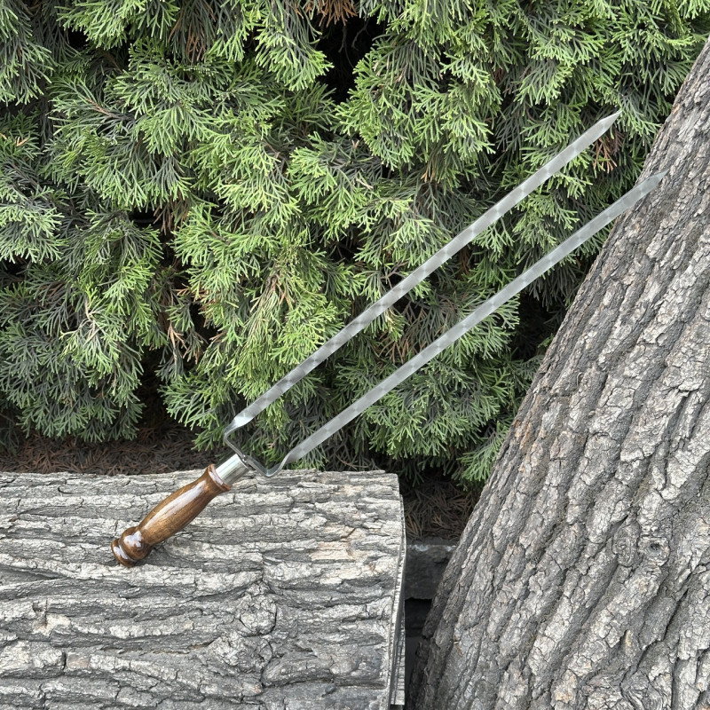 Представляємо вам революційний Шампур подвійний з дерев'яною ручкою з нержавіючої сталі - ідеальний інструмент для справжніх гурманів та любителів приготування шашликів та барбекю! Поєднуючи у собі високу якість матеріалу та інноваційний дизайн, цей шампур стане незамінним аксесуаром для ваших пікніків.