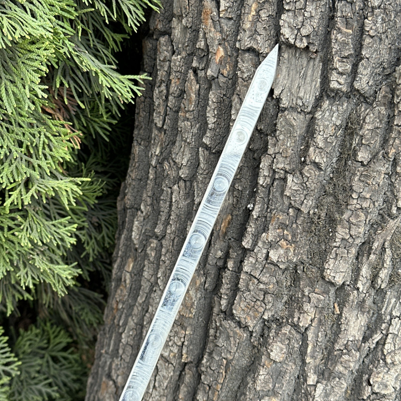 Лезо шампура виготовлено з високоякісної харчової нержавіючої сталі AISI 430 (аналог 12Х17), забезпечуючи міцність та довговічність. Нержавіюча сталь гарантує, що шампур не тільки чудово витримує високу температуру, але й легко чиститься після використання, не втрачаючи свого блиску та бездоганного зовнішнього вигляду.