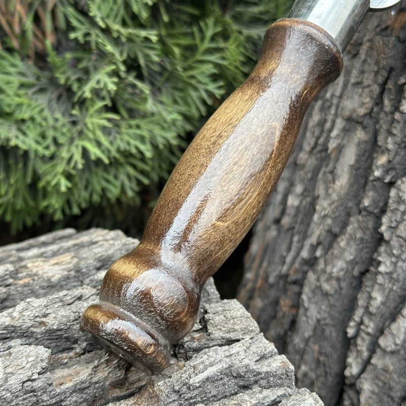Ручка вилки виконана з дерева з високою щільністю і забезпечує хорошу ергономіку та комфортне захоплення, а також запобігає передачі тепла від нагрітої сталі на руку користувача.