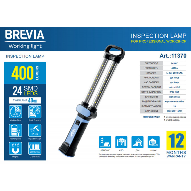 Ліхтар інспекційний Brevia LED 24SMD 40см 400lm 2000mAh microUSB