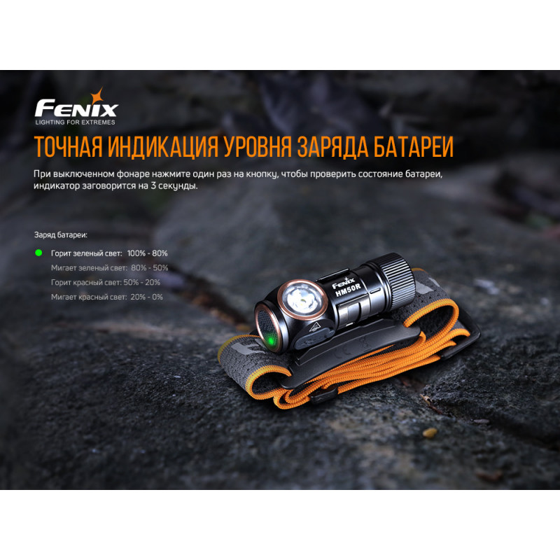 Модель ліхтаря Fenix HM50R V2. 0 це перезаряджається багатофункціональний налобник. Він надасть вам користь під час активного дозвілля та туристичної діяльності, наприклад, коли ви вирушили в кемпінг, похід, або працюєте в умовах нестачі освітлення. Живлення походить від перезаряджається літій-іонного акумулятора 16340, і ця батарея є в наборі. Найбільший світловий потік становить 700 люменів, а далекобійність променя – 115 метрів. Для роботи ліхтаря використовується діод знаменитої фірми Cree XP-G3 S4, освітлення-біле. Термін служби такого діода становить 50 тисяч годин. Крім білого освітлення також передбачений ще й червоне світло.