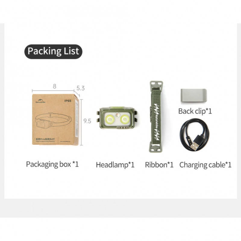 Ліхтар Naturehike CNK2550ZM011, зарядний кабель, налобна резинка, знімна кліпса.