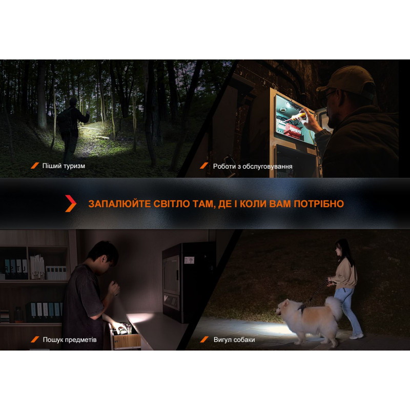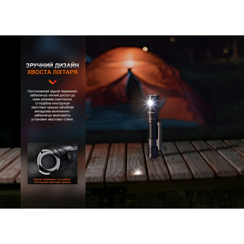Для керування інтерфейсом Fenix LD12R необхідно натискати хвостову кнопку або повертати головну частину корпусу.