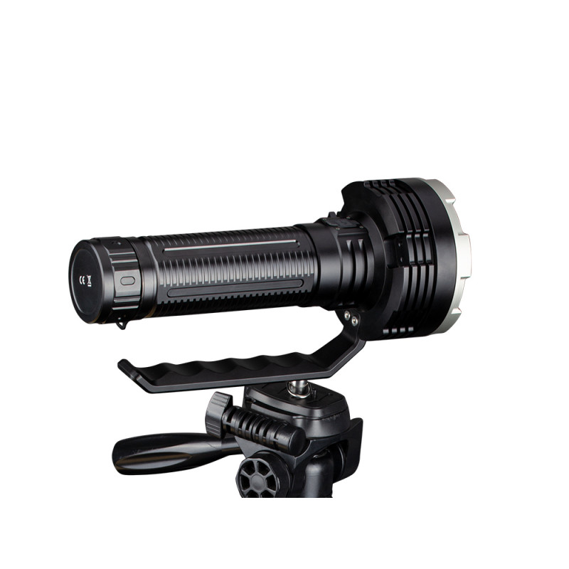 Тут використані 6 світлодіодів Luminus SST70 з терміном служби до 50 тисяч годин. Зарядка за допомогою USB Type-C дає можливість досить швидко, за 4 години, зарядити акумулятор. Доступні дві групи режимів роботи ліхтаря, і управляються вони двома кнопками. Для перенесення Fenix LR80R передбачена зручна знімна ручка. А щоб не було перегріву при такому потужному освітленні, в моделі існує опція скорочення яскравості при роботі на близьких дистанціях.