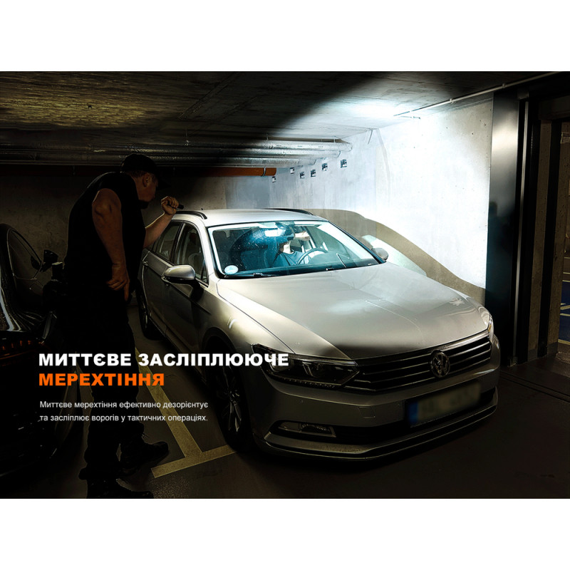 - Увімкнути/вимкнути ліхтар: натискання тактичної кнопки до упору.