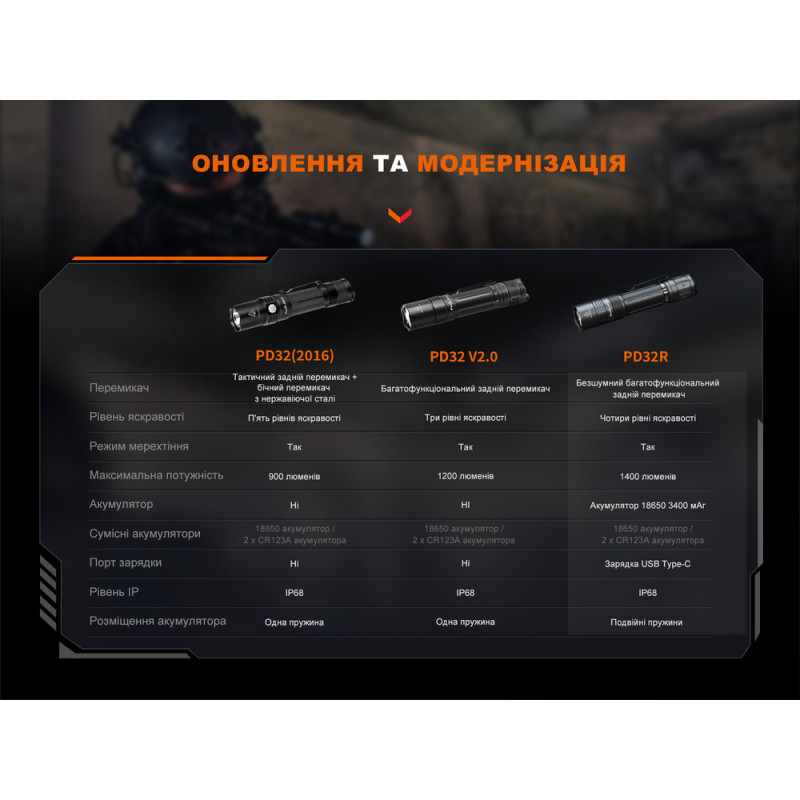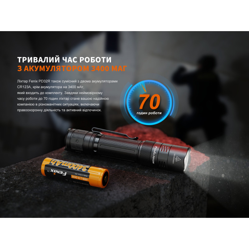Модель Fenix PD32R — це високопродуктивний ліхтар для тактичних цілей, що підходить для використання в екстремальних умовах, в яких цінується не лише якість світла, а й зносостійкість та довговічність конструкції.