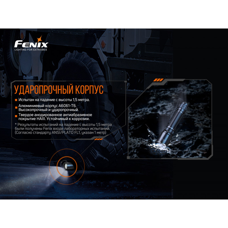 Комплектація | Ліхтар, акумулятор Fenix ARB-L21-5000 Li-ion, USB Type-C кабель для зарядки, темляк, чохол, 2 х запасне кільце ущільнювача, інструкція, гарантійний талон. | |||||