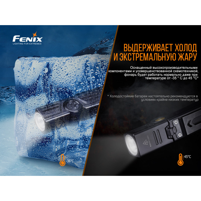 Модель Fenix WT25R стане в нагоді для використання в промислових і операційних приміщеннях. Ліхтар має r-подібну форму і регульований кут нахилу головної частини корпусу. Тут доступні шість режимів світіння, при цьому, найбільша яскравість досягає 1000 люменів. У ліхтаря є магнітне підставу, щоб можна було його зафіксувати на металевих поверхнях. Це зручно, і звільняє руки власника ліхтаря для виконання завдань. Функціонує на діоді Cree XP-L HI, американського виробництва, ресурс роботи якого досягає 50 тисяч годин.