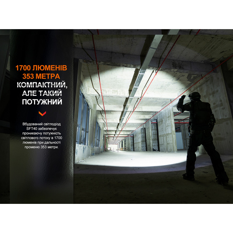- Турбо: 1700 лм – 31200 кд – 353 м – 2 год 15 хв.