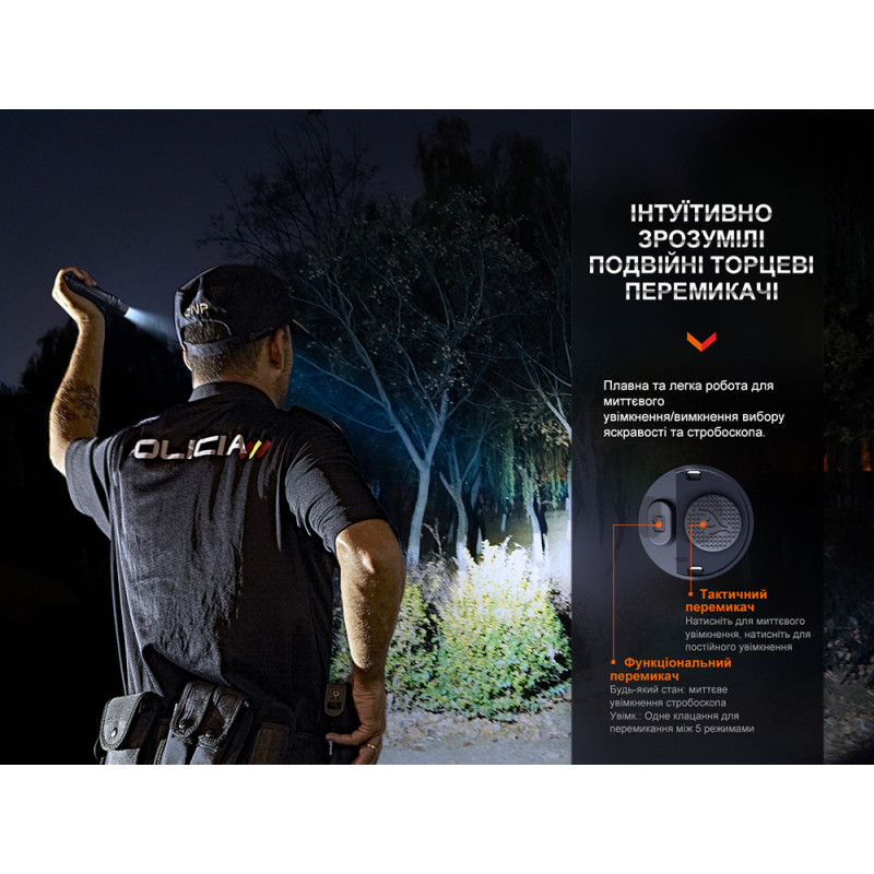 - Увімкнення/вимкнення: натискання тактичного перемикача до клацання.