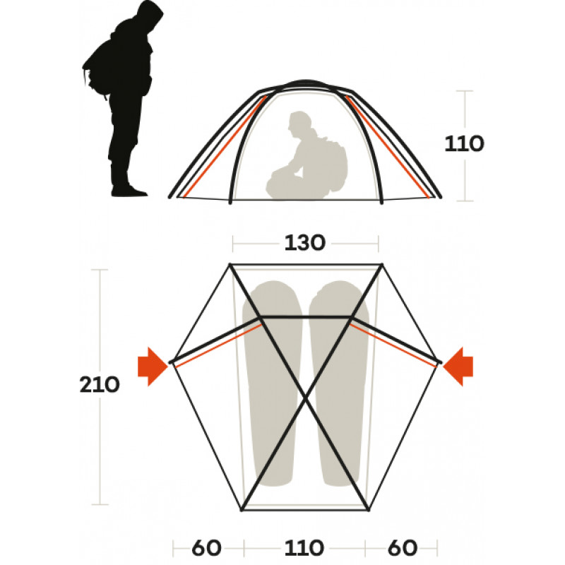 | Комплектація | Внутрішній намет, зовнішній тент, дуги, кілочки, відтяжки, інструкція, ремкомплект, чохол із компресійною стяжкою |