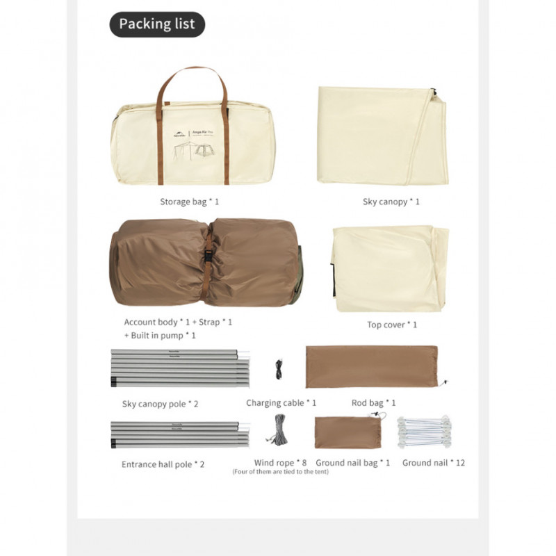 Опис тримісного намету надувного автоматичного з тентом Naturehike Ango CNK2550WS017, коричневого:
