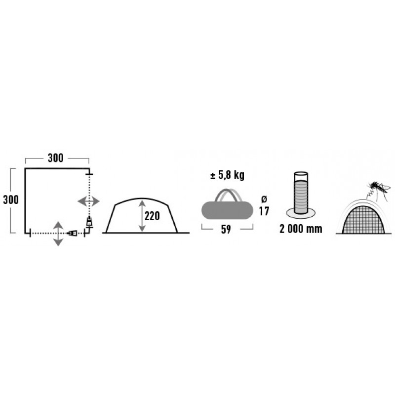 Шатро High Peak Pavillon Light Grey/Dark Grey/Lime (14047) забезпечує відмінний захист від сонця та вітру. 2 сітчасті стінки на блискавці захищають від настирливих комах, а 2 тканинні стінки захищають від негоди у разі дощу. Конструкція каркасу з куточками із АBS-пластику має достатню висоту для оптимального використання внутрішнього простору. Мала вага, невеликий розмір упаковки та швидке встановлення роблять шатро ідеальним для проведення вечірок та фестивалів.
