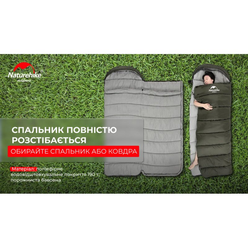 Спальний мішок з худі Hollow Cotton від Naturehike з моделлю-конвертом, щоб його можна було широко розкрити в ковдру. Цей вид також можна комбінувати в двомісну модель. Кольори моделі: коричневий, зелений. Спальник забезпечує користувачеві комфорт, затишок і тепло в польових умовах.