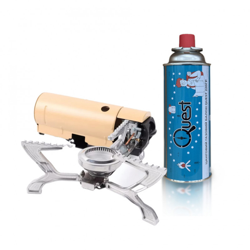 Опис набору газовий пальник BRS-99 + газовий балон цанговий бутановий Quest, 220гр: