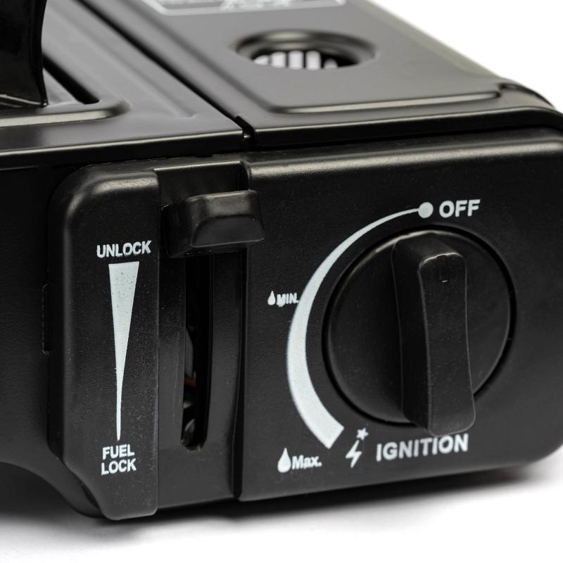 Завдяки п’єзоелектричному автозапалюванню користування плиткою максимально просте та безпечне. Також передбачено регулятор полум’я, який дозволяє точно налаштовувати інтенсивність вогню залежно від потреб приготування.