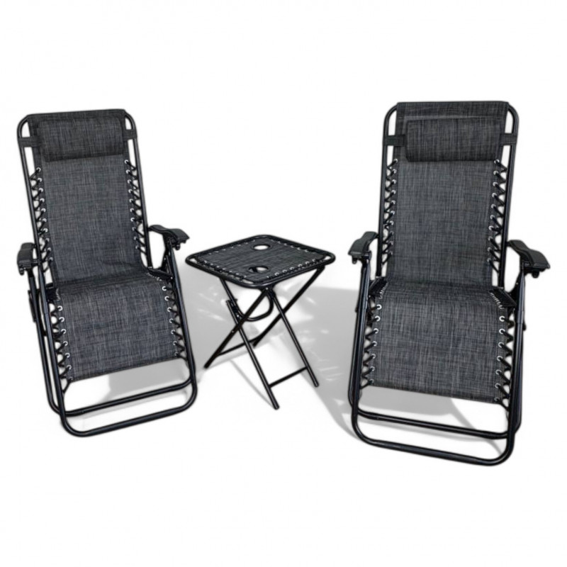 Комплект 2-а розкладні крісла-шезлонга + столик Zero Gravity LEOBRO Темно-сірий (LB-ZGT-F3-DGR)