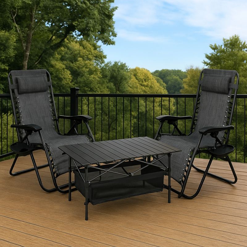 Комплект із 2 шезлонгів і столу 95х55х50 см Zero Gravity LEOBRO (LB-ZGC-F1-DGR-FT-A2)