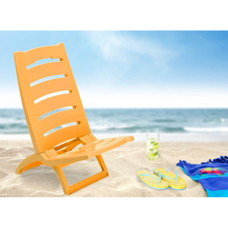 Крісло-шезлонг Adriatic 37.5×65 виготовлене з міцного пластику яскравого жовтого відтінку, який зберігає насичений колір навіть за тривалого впливу ультрафіолету. Невеликі габарити 55×37.5×65 см і вага всього 1,85 кг роблять модель по-справжньому мобільною: її зручно переносити та швидко встановлювати будь-де. Сидіння на висоті 27 см і спинка висотою 65 см забезпечують комфортну посадку та добру підтримку тіла під час відпочинку чи читання на свіжому повітрі.