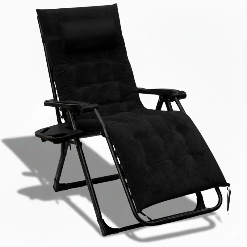Розкладне крісло шезлонг LEOBRO Zero Gravity Premium Plus Black Velvet (LB-ZGC-K3-BLK)