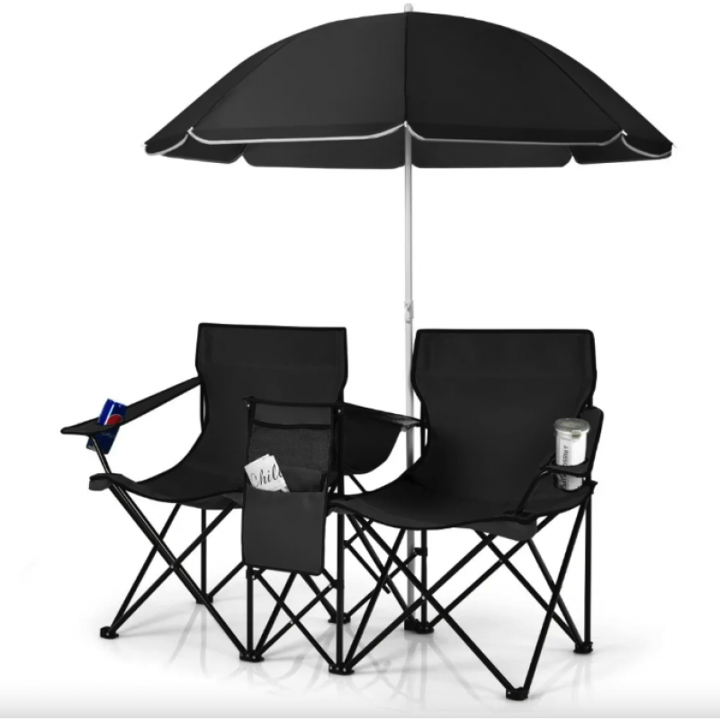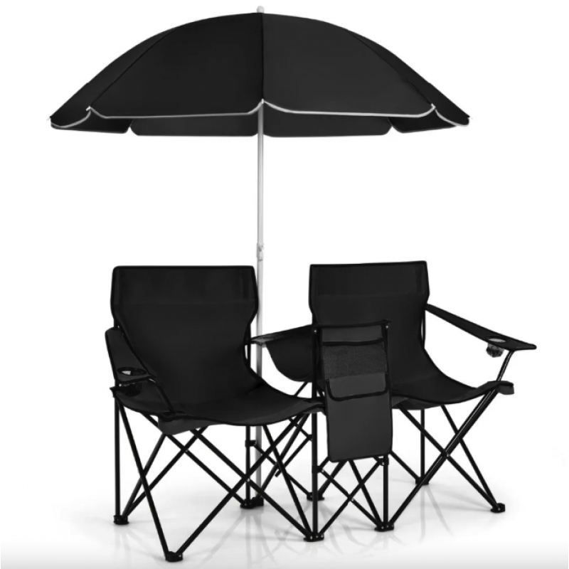 Комплект розкладних стільців Costway Parma з парасолькою чорний