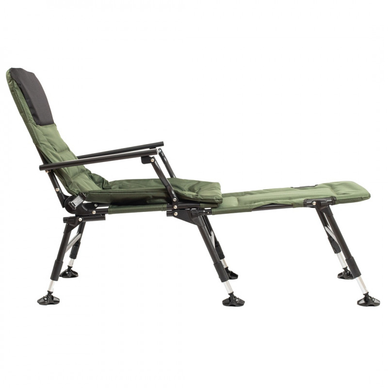 Регульовані ніжки дозволяють встановити крісло на будь-якій нерівній поверхні, а великі п’ятаки (8,5 см) запобігають просіданню в ґрунт або пісок. Міцний сталевий каркас доповнений алюмінієвими висувними ніжками, що забезпечує оптимальне поєднання надійності та зменшеної ваги.