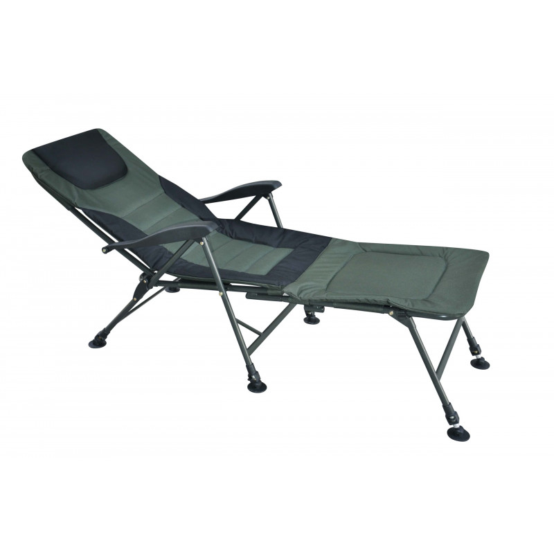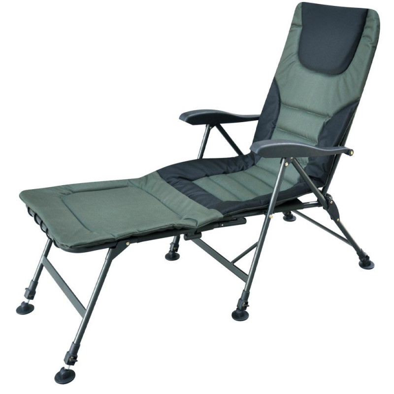 Коропове крісло-ліжко Ranger SL-104 - ідеальний вибір для рибалки. Більше не потрібно возити з собою окремо розкладачка. Головна його перевага в тому, що крісло легко можна перетворити в розкладачку за допомогою приставки. Так само можна відрегулювати кожну ніжку на потрібну висоту і під будь-яким кутом, щоб крісло на будь-який нерівній поверхні розташовувалося рівно. Ніжки стійкі і не занурюються в грунт. Сталева конструкція крісла потужна і, в той же час, максимально полегшена за рахунок пластикових підлокітників. Спинка регулюється під будь-яким кутом, це можна робити не встаючи з крісла, за допомогою підлокітників. Завдяки тому, що конструкція крісла кріпиться болтами, можна легко зняти тканину для прання і без проблем кріпити обважування для риболовлі. Крісло-розкладачка для відпочинку на риболовлі і природі, на дачі і у дворі. Компактно складається для зберігання і транспортування. Для зручності комплектується чохлом з ручками, крісло буде захищено від зовнішніх пошкоджень, та легко зможете перносити. Характеристики: - тканина крісла: подвійна тканина Оксфорд 600D з м'яким наповнювачем; - колір тканини: зелений, чорний; - каркас: сталева труба Ø22мм; - колір каркаса: чорний, сірий; - розмір в розкладеному вигляді: 70-99х60 см (ВхШ); з приставкою 167х59 см (ДхШ); - розмір сидіння: 52х49 см (ШхГ); - розміри приставки: 52х58 см (ШхГ); - висота спинки від сидіння: 65 см; - висота від підлоги до сидіння: 41-57 см; - висувні ніжки: 10 см; - навантаження: 140 кг; - вага: 6 кг.
