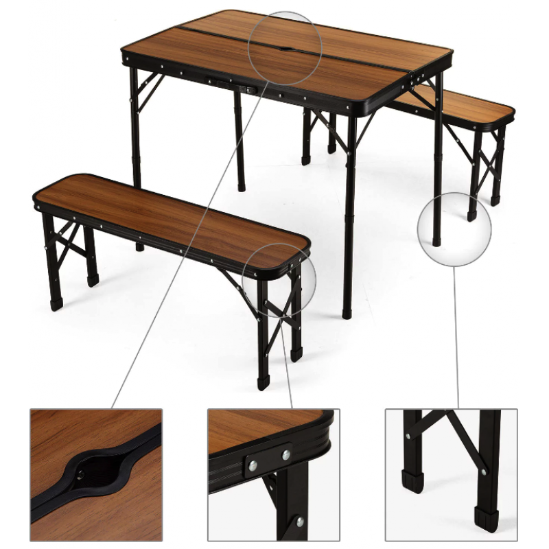 Стіл туристичний розкладний Outtec + 2 лавки коричневий