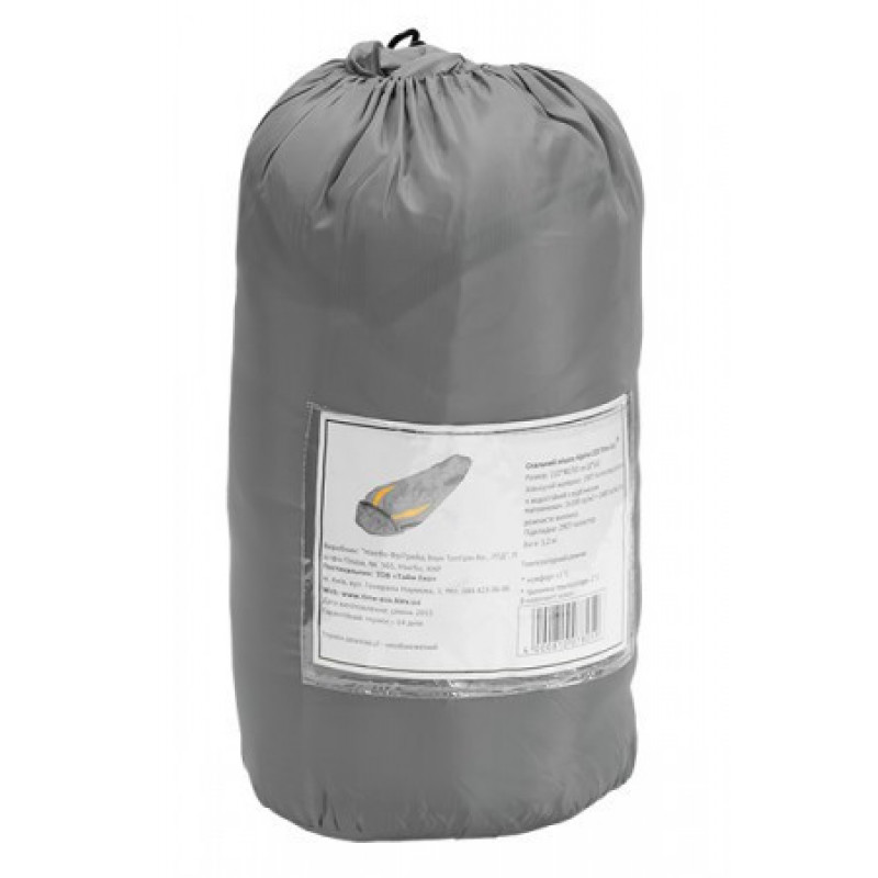 Бренд: Time Eco® (Україна)Гарантійний термін: 6 міс.Тип: коконРозташування блискавки спальника: Ліворуч (L)Матеріал: водостійкий поліестер ріпстоп 190Т з відблискомНаповнювач: порожнє волокно 2х100 гр/м2 +2х80 гр/м2Підкладка: поліестер 290ТКолір: сірий;Комфортна температура: +3 °СГранична температура: -2 °СРозміри: 220*80/50 смВага: 1 кгУпаковка: тканинний чохол