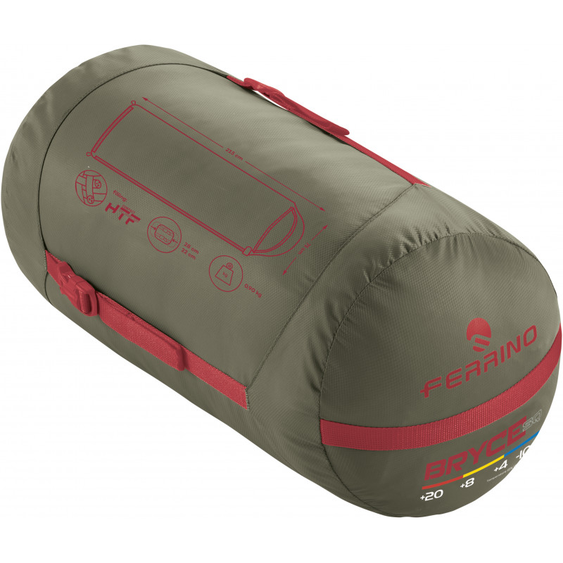 Ferrino Bryce SQ/+9°C Green Left (86376MVVS) - перші екологічно чисті спальні мішки Ferrino, виготовлені з перероблених тканин і наповнювачів Repreve®. Для виготовлення кожного мішка використовується близько тридцяти півлітрових ПЕТ-пляшок. Рекомендується для трисезонних походів.