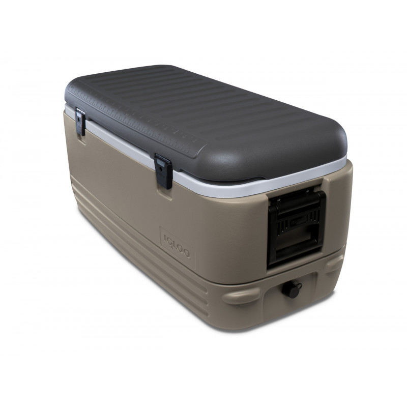 Великий та місткий ізотермічний контейнер IGLOO® Sportsman 120 у стильному сіро-бежевому кольорі виконаний з типів пластику стійких до пошкоджень із конструкцією, що передбачає підвищене навантаження.Подвійна ізоляція Ultratherm® корпусу і кришки забезпечує тривале збереження температури всередині боксу до 5 днів (із використанням акумуляторів холоду/тепла).Система «Threaded Drainplug» передбачає пластиковий зливний клапан гвинтового типу для видалення рідини або конденсату з камери, що також стане корисним при митті контейнера.Складані бічні ручки з гвинтовим кріпленням до корпусу забезпечують комфортне перенесення та компактне зберігання, а також витримують підвищене навантаження.«Dual snap-fit latches» — надійні подвійні застібки запобігають мимовільному відкритті контейнера при транспортуванні, попереджають втрату температури чи випадіння вмісту контейнера.Відлита на кришці мірна лінійка послугує для зручного фісування розмірів продукції (напр., риби).Пропонуємо обрати якісні та ефективні акумулятори температури для подовження збереження температурного режиму всередині боксу за посиланням: