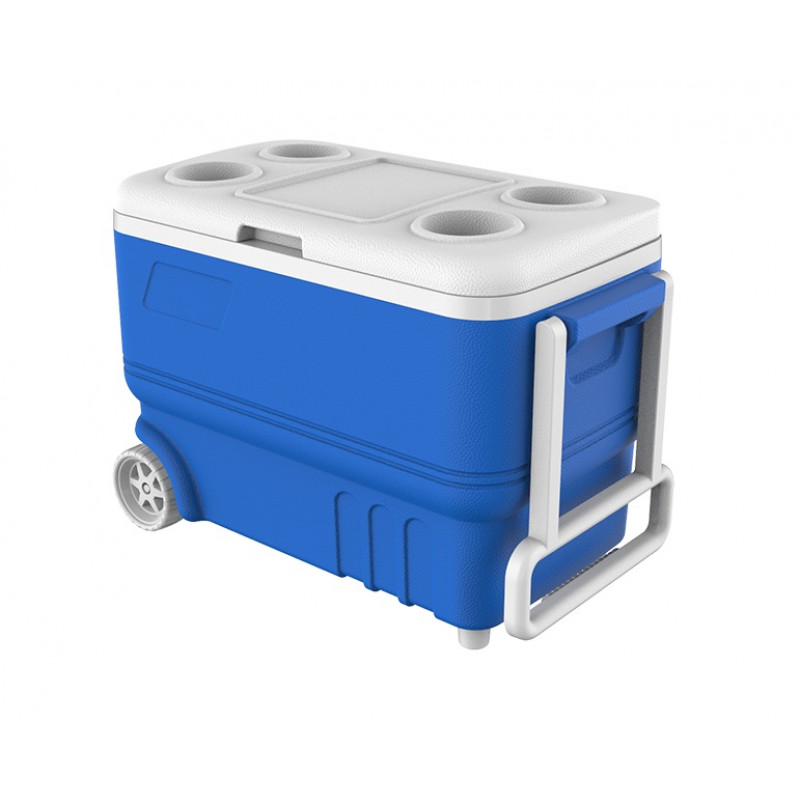 Термобокс MAZHURA об'ємом 38 літрів виготовлений з міцного пластику синього кольору.