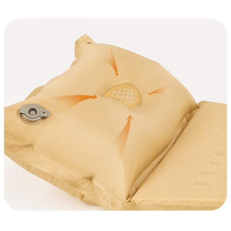 В цьому килимку реалізована технологія самонадування. Зазвичай, у згорнутому стані він компактний і плоский. Спочатку потрібно відкрити повітряний клапан, щоб матрац ввібрав повітря, а потім надути килимок. Після цього повітряний клапан закривається, щоб повітря не потрапляло.
