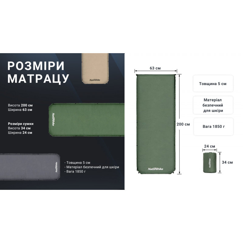 Опис матраца самонадувного 5 см Naturehike NH20DZ003, бежевий