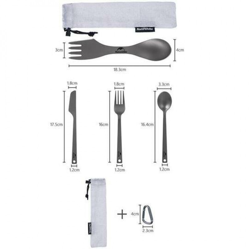 Ложка-виделка-ніж Naturehike Titanium NH19T012, титан