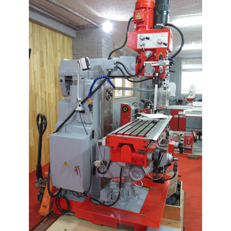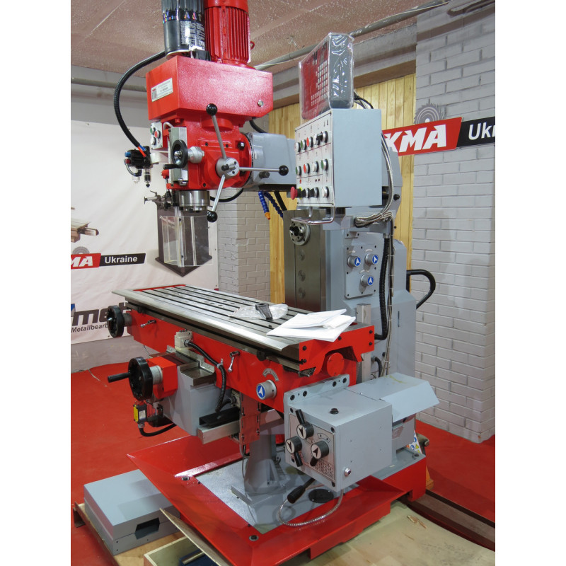- Поворотна на 45 градусів вертикальна фрезерна головка з можливістю закріплення у будь-якому кутовому положенні
