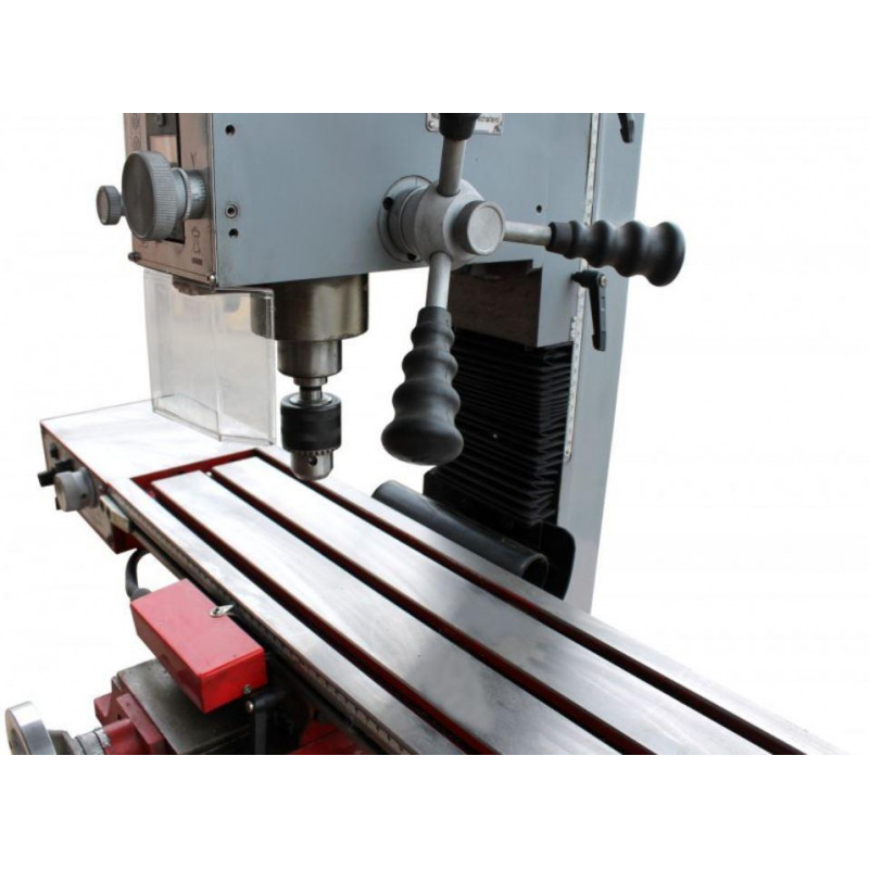 Верстат оснащений координатним столом 700х180 мм з вимірювальною шкалою і упорами. Міцна чавунна конструкція забезпечує високу стабільність і оптимальну точність роботи. Функція обертання вліво-вправо у стандартному виконанні.
