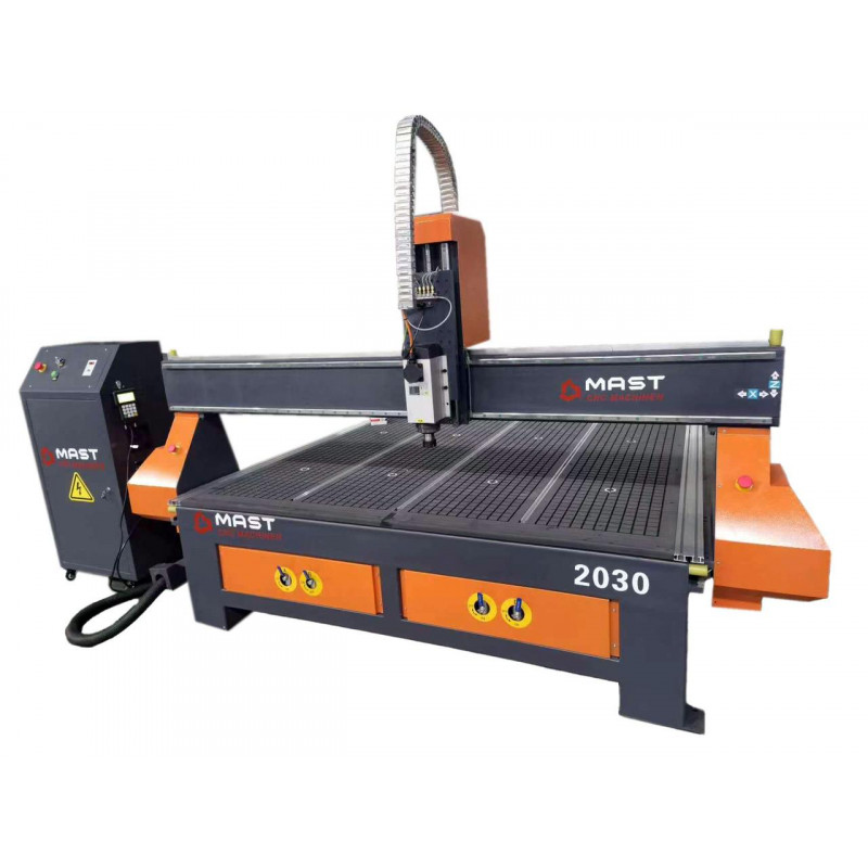 Фрезерний верстат по дереву з ЧПУ MAST 2030 - це високоякісне професійне обладнання для робіт по дереву. Виконує фрезерування та гравіювання заготовок по площині (програмне забезпечення 2D) та обробку у тривимірному просторі (3D фрезерування). Підходить для обробки всіх видів деревини, МДФ, ДСП, ДВП, фанери, алюмінієвих композитних панелей Alucobond і Dibond, всіх видів полістиролів (у тому числі з ПВХ і полікарбонатом), штучного каменю, модельного пластику, гетинаксу, оргскла, акрилового скла та багатьох інших матеріалів.