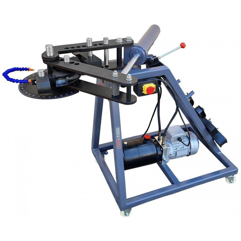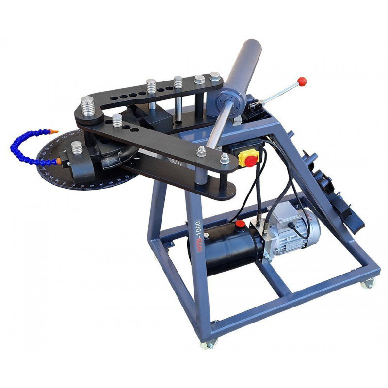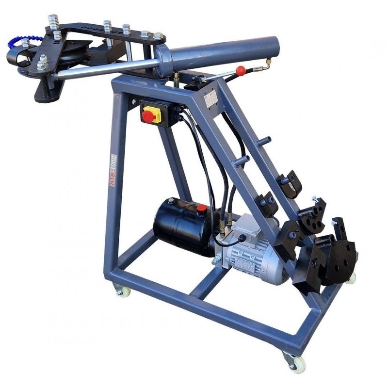 Гідравлічний верстат Metcor HTB1000 - це надійне обладнання для згинання сталевих труб круглого перерізу, яке ефективно використовується для професійного монтажу та ремонту трубопроводів. Працює на базі трифазного двигуна потужністю 550 Вт. Оснащений потужною гідравлічною системою, яка забезпечує велике зусилля при мінімальній витраті часу. Згинання здійснюється за допомогою системи важелів, що приводиться в дію гідравлічним циліндром. Згинання труби навколо оправки відповідного розміру забезпечує точність кута і радіуса згину. Кут згинання становить 0-120°, а при використанні додаткових прес-форм може сягати 240°.