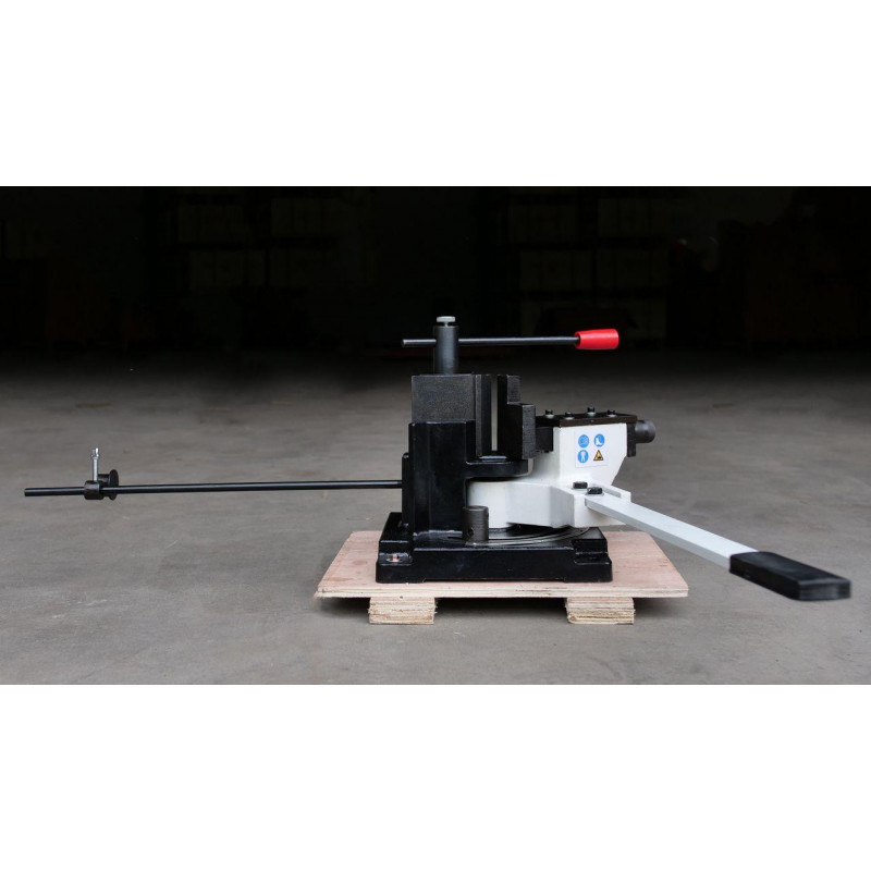 Швидкозатискний ексцентриковий механізм забезпечує надійну фіксацію заготовки, а регульований упор забезпечує високу точність для згинання однакових деталей. Литий металевий корпус з антикорозійним покриттям стійкий до навантажень і вібрацій, забезпечуючи стабільність процесу обробки. Проста в налаштуванні і обслуговуванні конструкція, невеликий розмір і вага дозволяють легко транспортувати цей настільний згинальний верстат, швидко підготувати його до роботи і компактно зберігати.