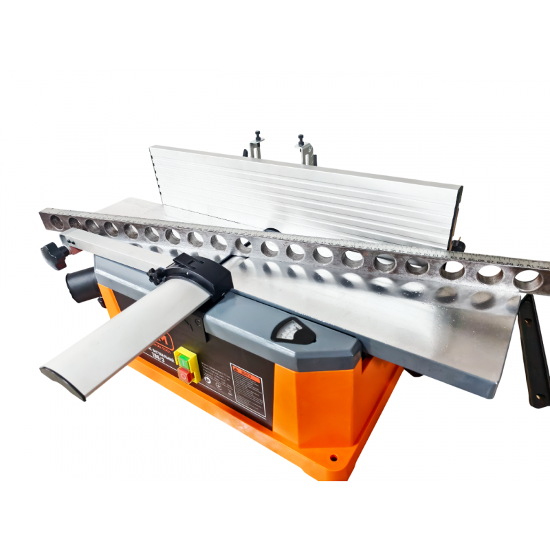 Оснащений потужним двигуном на 1100 Вт і фугувальним валом зі швидкістю обертання 10 000 об/хв, верстат забезпечує високу якість поверхні навіть за інтенсивного використання. Два прямі ножі забезпечують точне і чисте стругання. Робочий стіл розміром 725?160 мм виготовлений з литого алюмінієвого сплаву, має фрезеровану поверхню та розширювачі, що підвищують зручність під час обробки довгих заготовок.