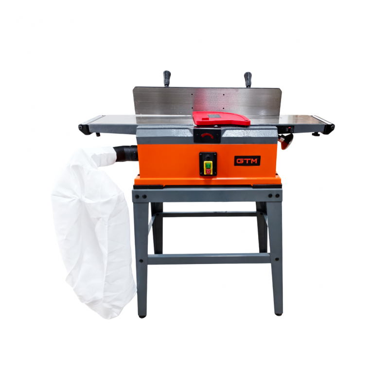 Верстат має інтегровану активну систему аспірації з мішком для стружки, яка ефективно видаляє відходи обробки, зберігаючи чистоту та безпеку робочого місця. Лита упорна направляюча забезпечує точність ведення деталі під час стругання.