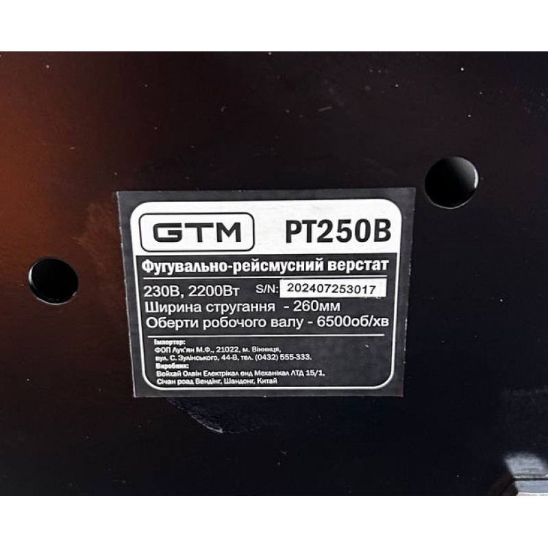 Фугувально-товщиностругальний (рейсмусний) верстат PT250B 2200Вт ( 2 в 1)
