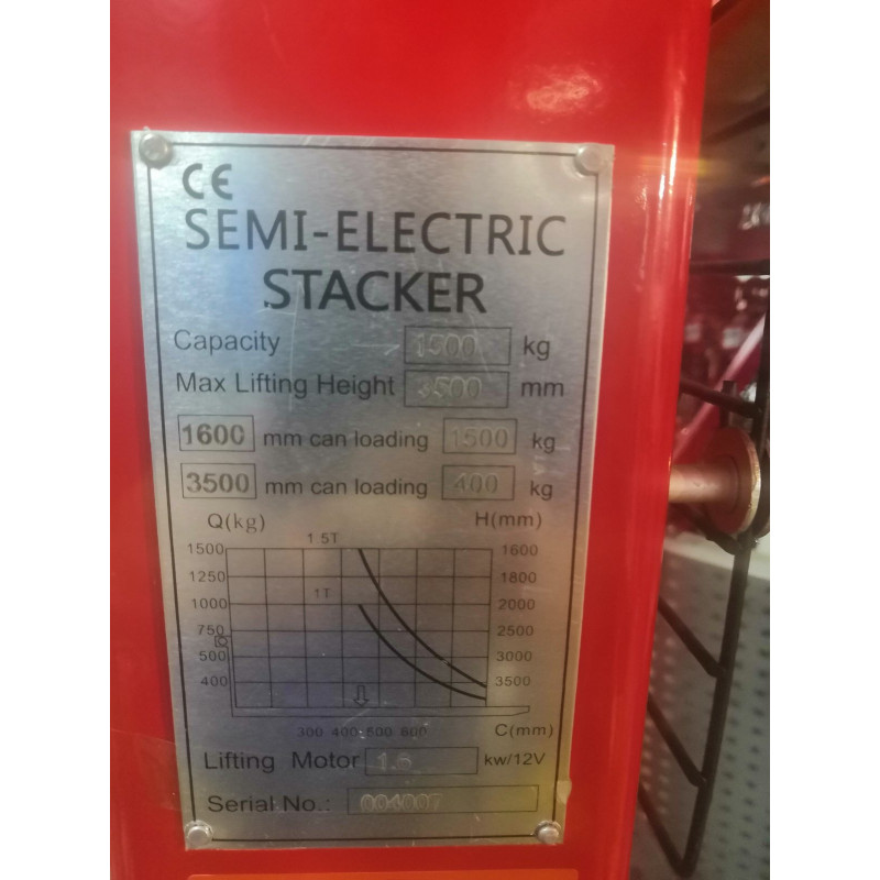 Штабелер ел.гідравлічний несамохід. 1500кг, підйом-3,5м, довжина вил 1,1м