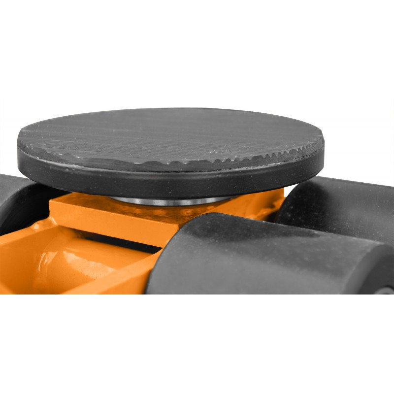 Платформа забезпечує рівномірний розподіл навантаження і стійкість вантажу, а прогумовані опори мінімізують ризик його пошкодження. Шасі оснащене міцними поліуретановими роликами з плавним і тихим рухом, які мають відмінне зчеплення та амортизацію і не пошкоджують поверхню. Для керування рухом використовується ергономічний важіль довжиною 900 мм. Радіус повороту 90° дозволяє легко маневрувати в умовах обмеженого простору. У складеному вигляді комплект компактний, його можна перевозити в автомобілі і зручно зберігати. Завдяки міцній конструкції з якісних матеріалів транспортувальний набір WL3+WF3 надзвичайно зносостійкий і має тривалий термін служби.
