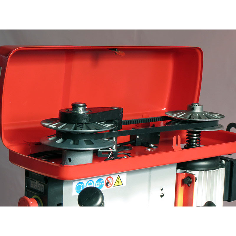 Плавне регулювання швидкості обертання шпинделя від 390 до 2200 об/хв дозволяє налаштувати потрібні параметри під будь-який вид металу. Стіл регулюється по висоті та куту нахилу до 45° в обидві сторони. Регульований обмежувач глибини свердління зі шкалою дозволяє контролювати процес роботи. Лита чавунна основа забезпечує стабільність і точність свердління. Цей та інші верстати свердлильні від провідних європейських виробників ви знайдете на нашому сайті.
