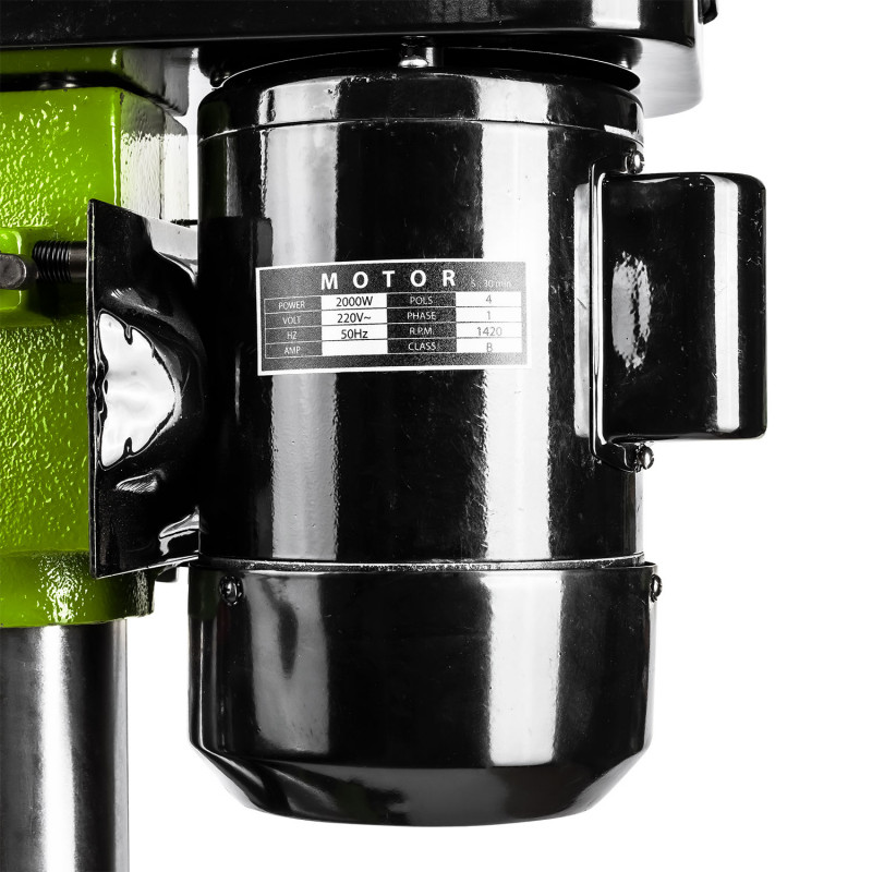 Свердлильний верстат Procraft BD2000 є професійним обладнанням, яке дозволяє свердлити наскрізні, глухі отвори, нарізати різьблення. Верстат є вдосконаленою моделлю, яка має потужність 650 Вт. Відмінності від попередніх версій Головною відмінністю є потужний електродвигун, а також коробка передач на 16 швидкостей, яка дозволяє змінювати швидкість у широкому діапазоні 180-3320 об / хв. Потужний двигун дозволяє розвинути зазначену швидкість для оперативного опрацювання деталей. Щоб регулювати швидкість, досить переставити ремінь приводу на потрібний шків. Ще однією відмінністю є особливий механізм подачі столу, що рухається на черв'ячній передачі. Крім регулювання висоти столу, є можливість зміни кута аж до 45 градусів в обидва боки. Верстат має велику висоту і габаритні розміри. Особливості верстата Щоб зменшити вібрацію в процесі роботи, надати більшу стійкість, станина верстата виконана з чавуну. Для фіксації заготовки передбачені невеликі лещата, встановлені в робочій зоні. Даний верстат буде відмінним вибором як для домашньої майстерні, так і для професійного цеху.
