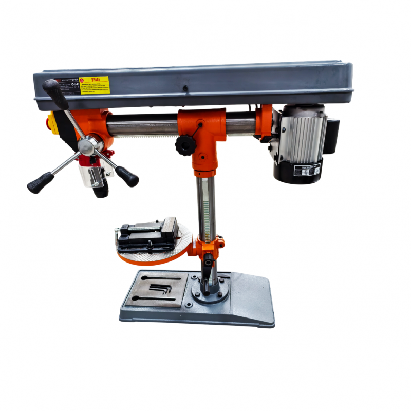 Патрон безключевий 16 мм з конусом МТ2 забезпечує зручну заміну оснастки. Діаметр робочого столу — 260 мм, він регулюється в діапазоні 150–390 мм від шпинделя, що дозволяє працювати з деталями різної висоти. Колона діаметром 58 мм та основа 560?250 мм гарантують достатню жорсткість і стійкість під час свердління.
