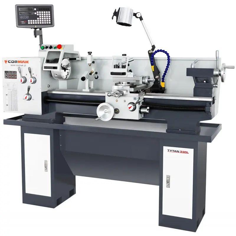 Токарний верстат Cormak TYTAN 330L призначений для точіння внутрішніх і зовнішніх поверхонь, свердління, нарізання метричної і дюймової різьби та широкого спектру інших завдань по металу. Асинхронний двигун потужністю 1,1 кВт з високим крутним моментом і 12-швидкісний редуктор з діапазоном 65-1650 об/хв забезпечують якісну обробку і високу продуктивність роботи. Максимальний діаметр заготовки - 330 мм, довжина - до 915 мм.